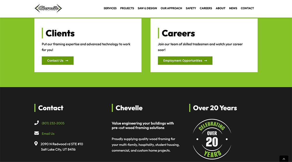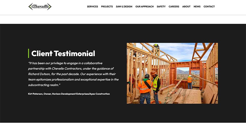 Gorge Agency is pleased to announce its collaboration with Kartchner Group to successfully rebuild the Chevelle Contractors website. This partnership has brought together Gorge Agency’s design expertise and Kartchner Group’s project management skills, resulting in a modern and user-friendly online presence for Chevelle Contractors. Kartchner Group provided all the necessary content, ensuring that the website accurately reflects the company’s values and services. Together, they have created a platform that enhances user engagement and showcases Chevelle Contractors’ commitment to excellence. Kartchner Group